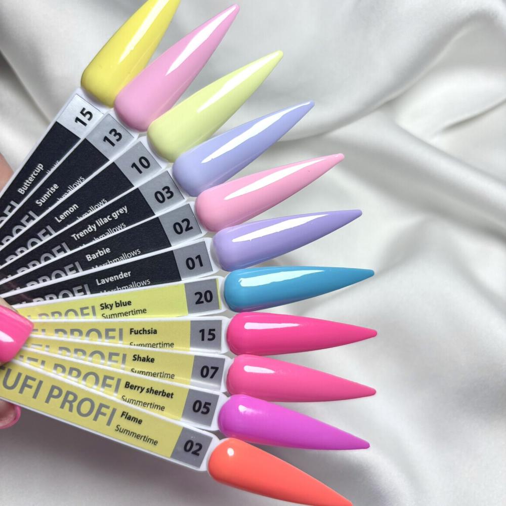 TUFI profi PREMIUM Summertime - сезонна палітра, що складається з різноманітних відтінків гель-лаків, свіжих, як весна і соковитих, як літо. При розробці палітри, ми спиралися на тренди в fashion індустрії, тому відтінки кольорів перегукуються з весняно-літніми колекціями інституту Pantone. Наші відтінки - помаранчеві «чорнобривці», соковите «полум'я», «місячне світло», «вересковий мед» - відмінно підкреслять загар. «М'ятне небо» і «морські глибини»- нагадають про відпочинок, охолодять і розслаблять.